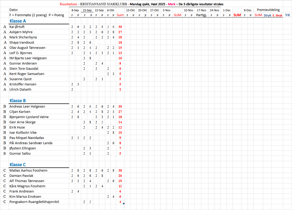 Mandagsjakk stilling etter 6. oktober 2025